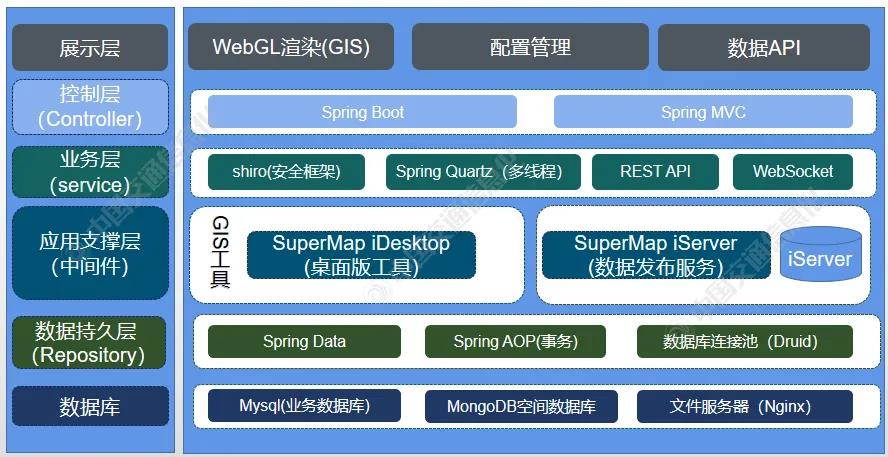 GIS是在计算机硬、软件系统支持下,对整个或部分地球表层(包括大气层)空间中的有关地理分布数据进行采集、储存、管理、运算、分析、显示和描述的技术系统,不仅具备图库管理功能,而且具备空间分析能力。GIS引擎提供强大的二三维场景缓存能力,能够将公路工程中的多元异构数据以Rest接口形式对外发布,将BIM模型、倾斜摄影模型、激光点云等多元异构数据融合显示在三维场景中,结合周边沿线环境、交通枢纽、水文保护区、军事管理区等,为公路行业路线设计方案、规划,以及地质、水文和气象数据,提供图形处理、地理标注、信息表现、空间分析、POI等基础功能,为交通车流量、规划投资决策提供服务工具和技术手段。